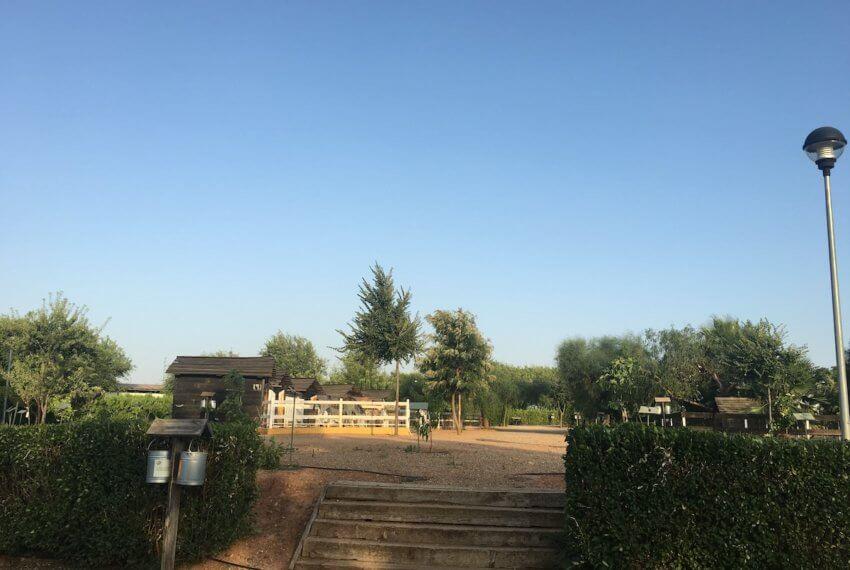 Im Außenbereich gibt es 8 Hundezwinger à je 3 Quadratmeter sowie 5 kleine Cabañas, sogenannte Hütten oder Häuschen, die jeweils eine Größe von 7,50 Quadratmetern haben. Sie lassen sich umwandeln oder entfernen, so dass landestypische Haustiere untergebracht werden können.